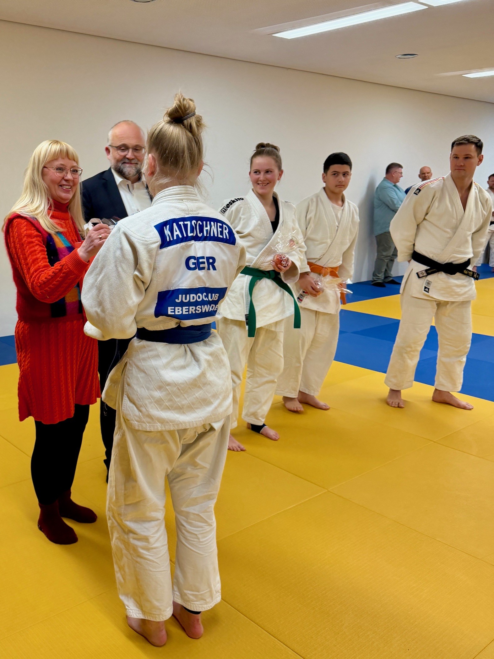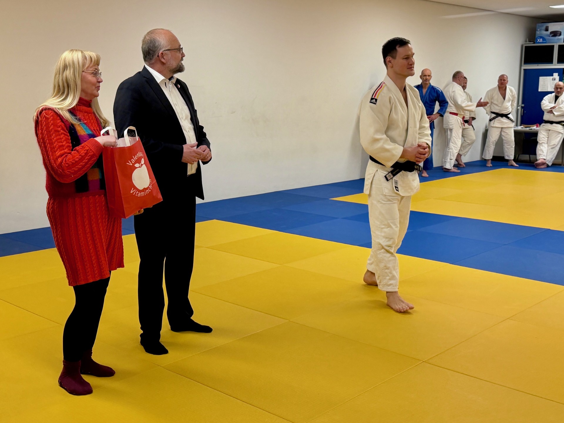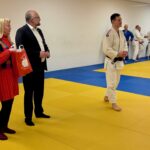 Herr Kurth nahm sich viel Zeit und hörte erfreut die Neuigkeiten aus dem Verein: gesundes Wachstum, starker Zusammenhalt, konkrete Zukunftspläne. Natürlich lernte herr Kurth bei dieser Gelegenheit ein neues Mitglied unseres Vereins kennen, Jan Schröder, einen der höchst angesehehen und höchst graduierten Judoka innerhalb des Brandenburgischen Judoverbands.